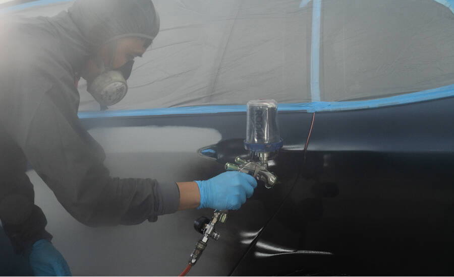 発色の良さに優れており、塗装後にシンナー特有の臭いが充満することもありません。こだわりの材料を使い、迅速・丁寧で確実な作業をさせていただきます。