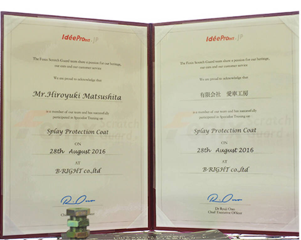 愛車工房は各種コーティング施工認定を得た技術者が在籍している認定プロショップです。